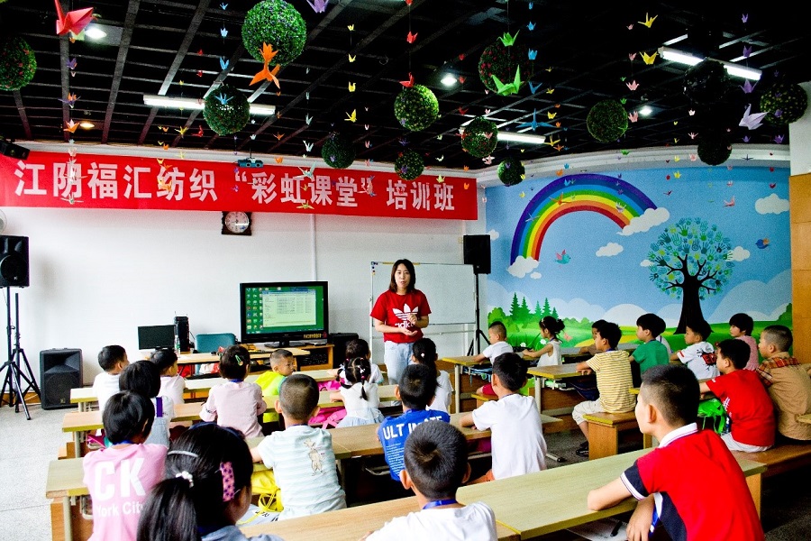 2015年以来,中纺福汇公司在推行现代企业管理制度的同时,追求接地气、有温度的管理,把目光聚焦在暑假来公司与父母团聚的留守儿童身上,经多方征求意见、反复研究可行性,成立了“彩虹课堂”工作组, 连续5年开设“彩虹课堂”——公司外来员工子女暑期培训班,将务工人员探亲子女集中托管,解决了员工的最大的“揪心事”。