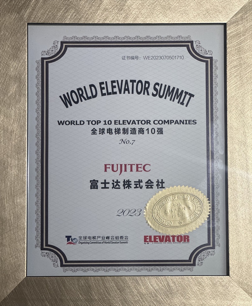 富士达电梯参加第15届中国国际电梯展并荣膺全球电梯制造商10强称号